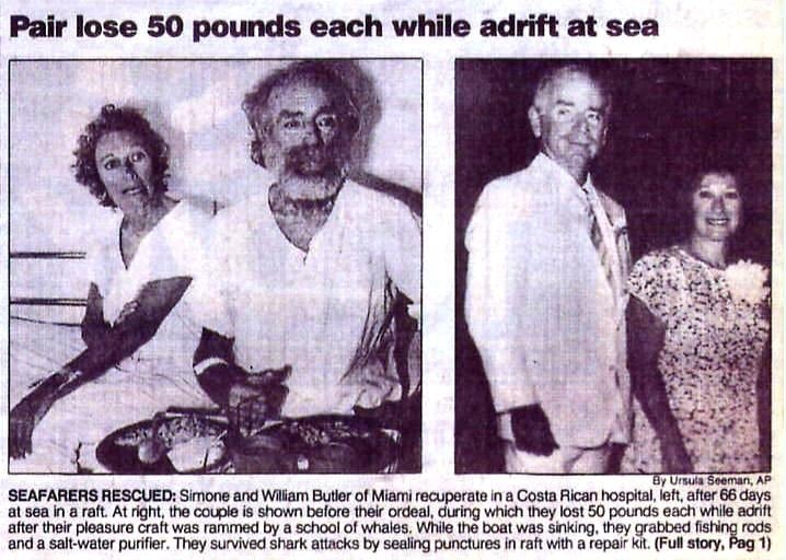 Butler çifti, salla sürüklendikleri müddet boyunca yalnızca açlıkla değil, botun etrafında dönen köpekbalıkları ve balıkların beslenme çılgınlıklarıyla da çaba etti. Fizikî ve ruhsal sonların zorlandığı bu sürecin sonunda, Kosta Rika Kıyı Güvenliği tarafından fark edilerek kurtarıldılar. Hastaneye kaldırıldıklarında ağır güneş yanıkları ve sıvı kaybı yaşamalarına karşın genel sıhhat durumlarının şaşırtan derecede düzgün olduğu bildirildi.